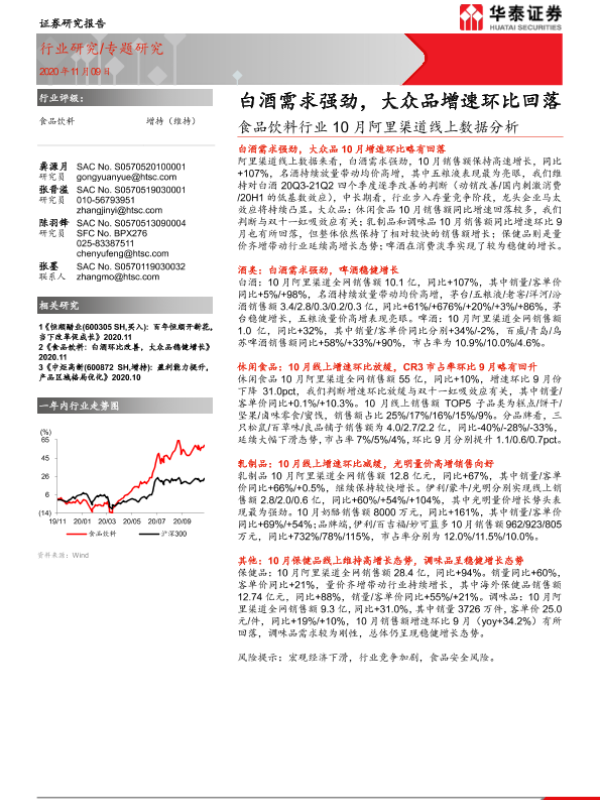 【华泰证券】【20201109】食品饮料行业10月阿里渠道线上数据分析:白酒需求强劲,大众品增速环比回落-17页