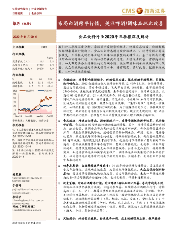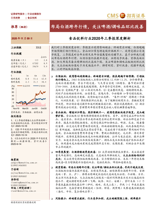 【海通证券】【20201109】食品饮料行业2020年三季报深度解析:布局白酒跨年行情,关注啤酒 调味品环比改善-20页