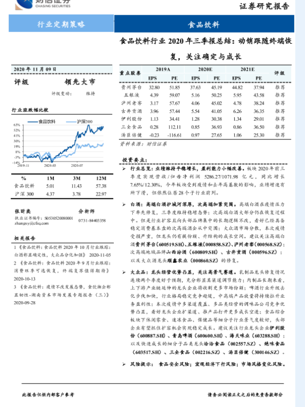 【财信证券】【20201109】食品饮料行业2020年三季报总结:动销跟随终端恢复,关注确定与成长-18页
