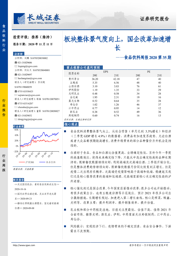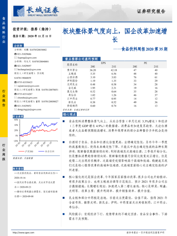 【长城证券】【20201111】食品饮料周报2020第35期:板块整体景气度向上,国企改革加速增长-10页