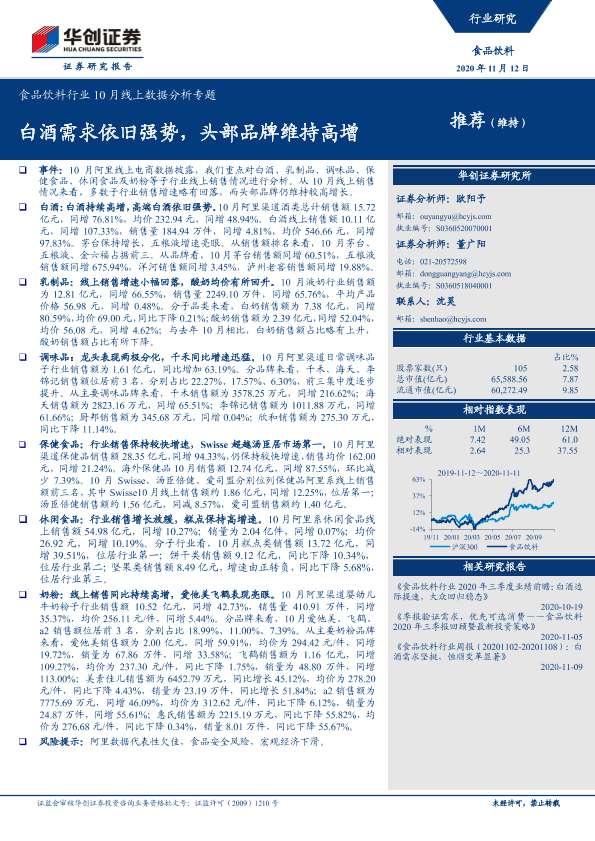 【华创证券】【20201112】食品饮料行业10月线上数据分析专题:白酒需求依旧强势,头部品牌维持高增-20页