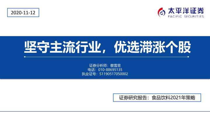 【太平洋证券】【20201112】食品饮料2021年策略:坚守主流行业,优选滞涨个股-38页
