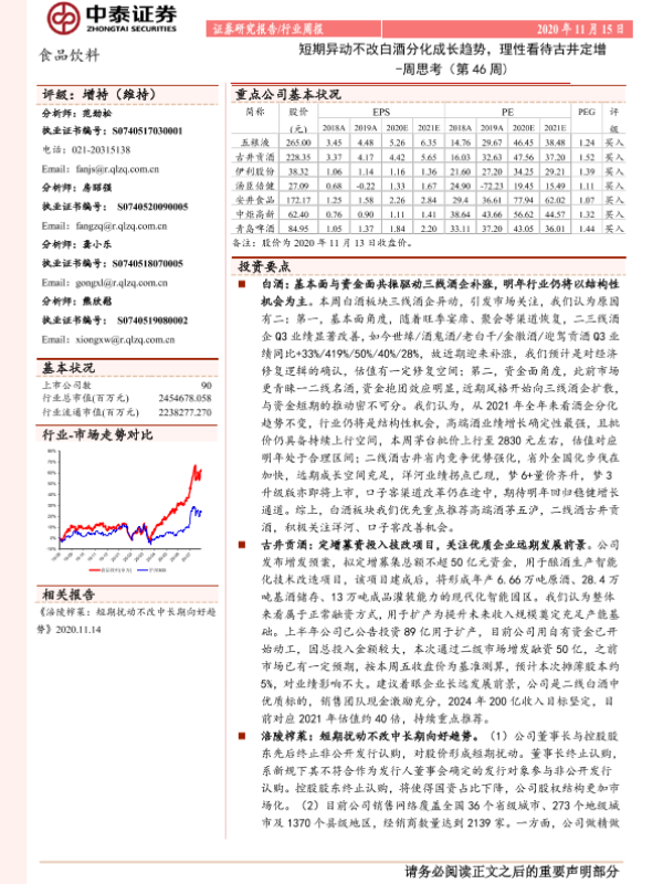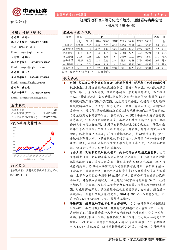 【中泰证券】【20201115】食品饮料周思考(第46周):短期异动不改白酒分化成长趋势,理性看待古井定增-8页