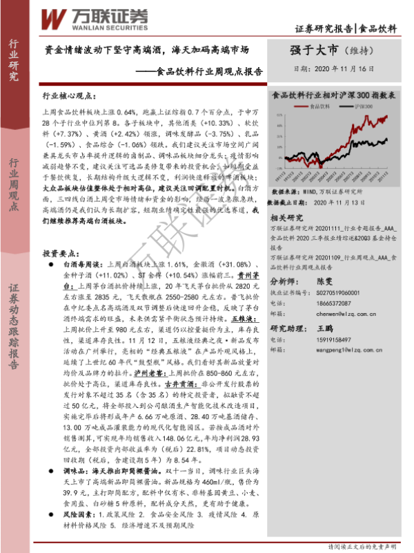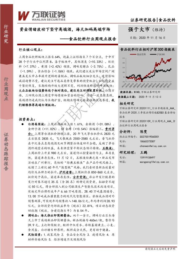 【万联证券】【20201116】20201116-万联证券-食品饮料行业周观点报告:资金情绪波动下坚守高端酒,海天加码高端市场-10页