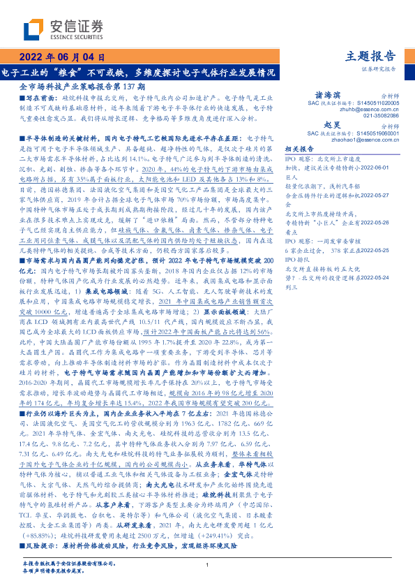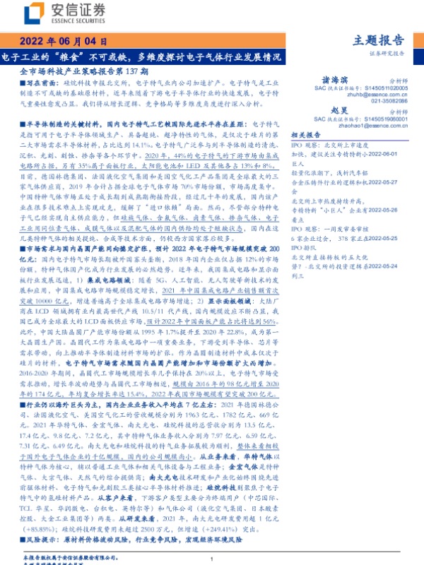 【安信证券】【20220604】全市场科技产业策略报告第137期:电子工业的“粮食”不可或缺,多维度探讨电子气体行业发展情况-32页