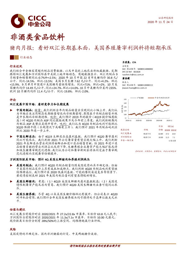 【中金公司】【20201124】20201124-中金公司-猪肉月报:看好双汇长期基本面,美国养殖屠宰利润料将短期承压-15页