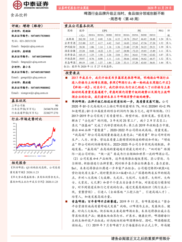 【中泰证券】【20201129】食品饮料周思考(第48周):啤酒行业品牌升级正当时,食品细分领域创新不断-9页