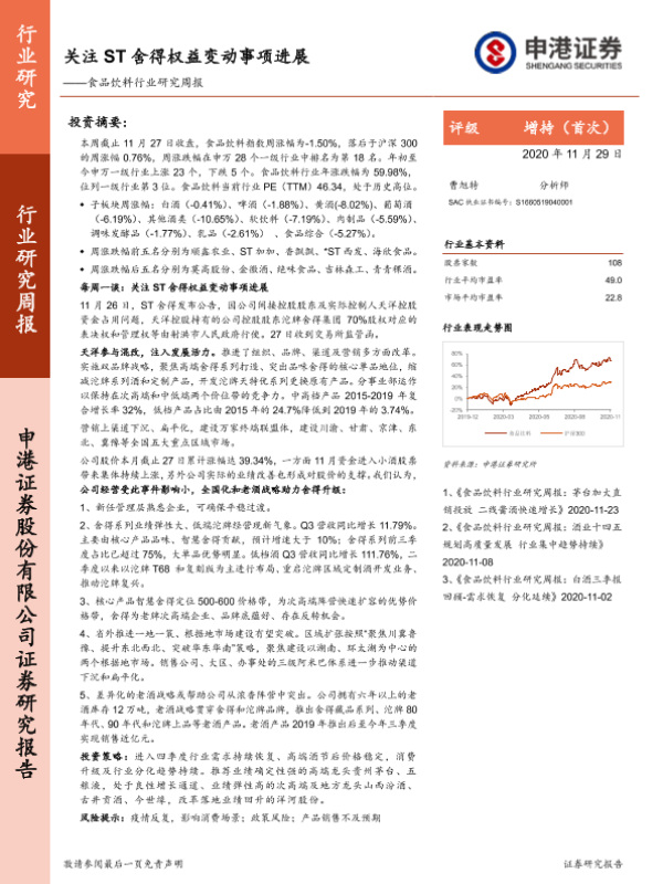 【申港证券】【20201129】20201129-申港证券-食品饮料行业研究周报:关注ST舍得权益变动事项进展-11页