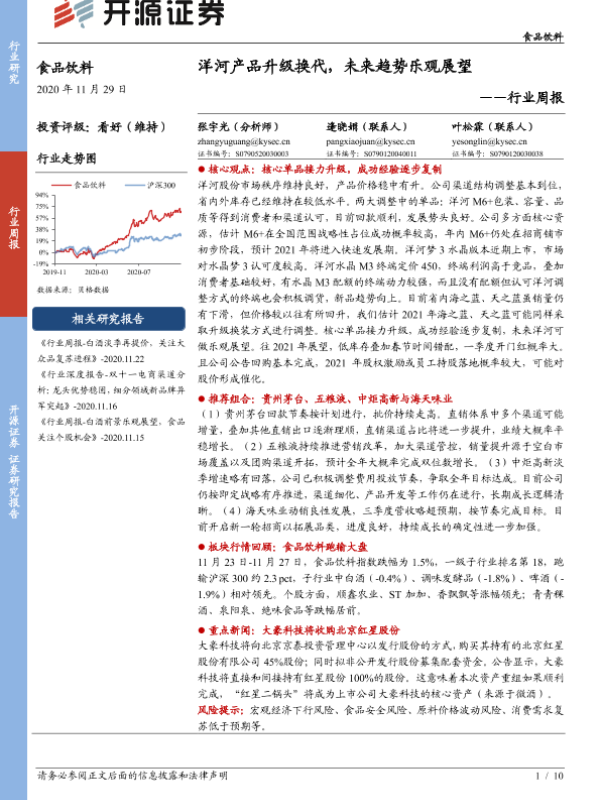 【开源证券】【20201129】20201129-开源证券-食品饮料行业周报:洋河产品升级换代,未来趋势乐观展望-10页