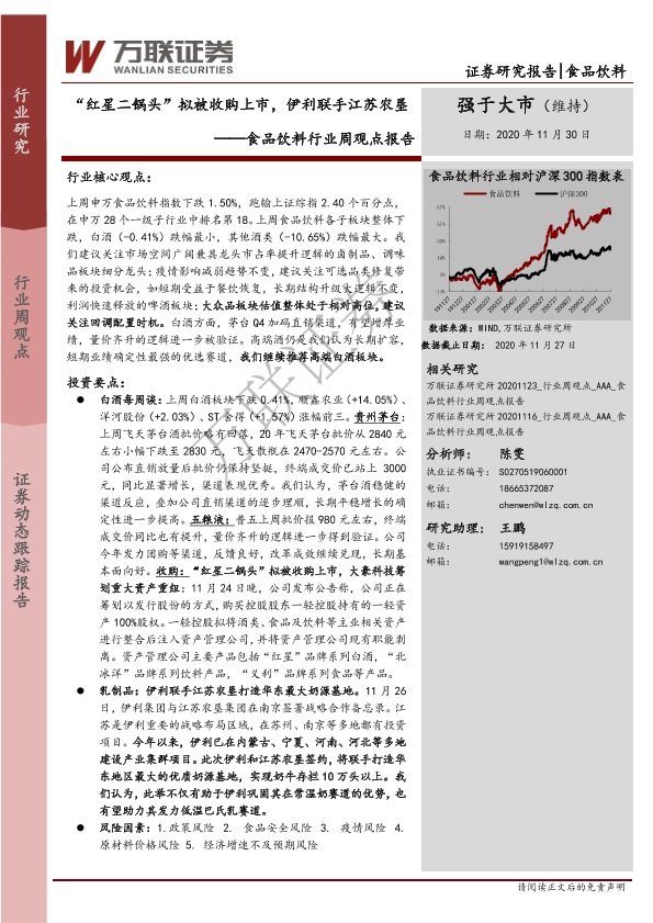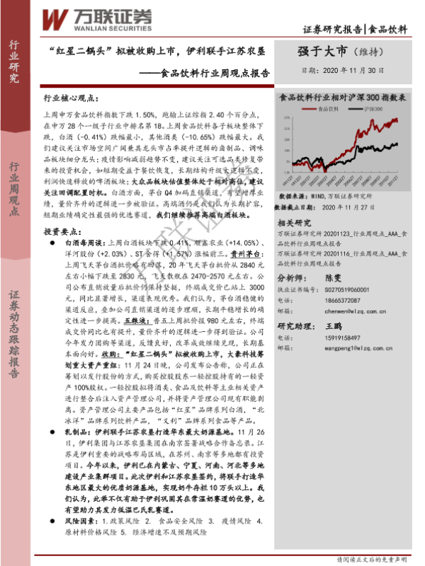 【万联证券】【20201130】20201130-万联证券-食品饮料行业周观点报告:“红星二锅头”拟被收购上市,伊利联手江苏农垦-11页