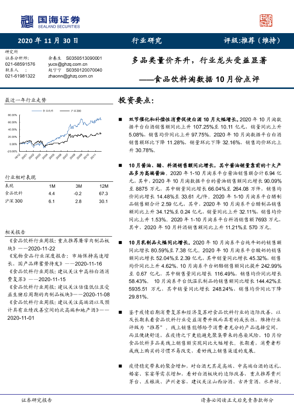 【国海证券】【20201130】食品饮料淘数据10月份点评:多品类量价齐升,行业龙头受益显著-28页