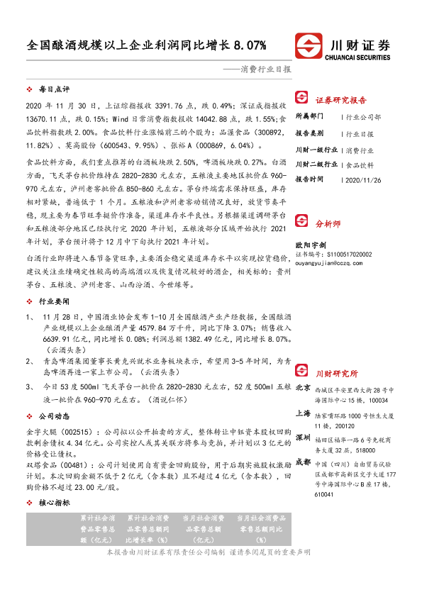 【川财证券】【20201126】全国酿酒规模以上企业利润同比增长8.07%-3页
