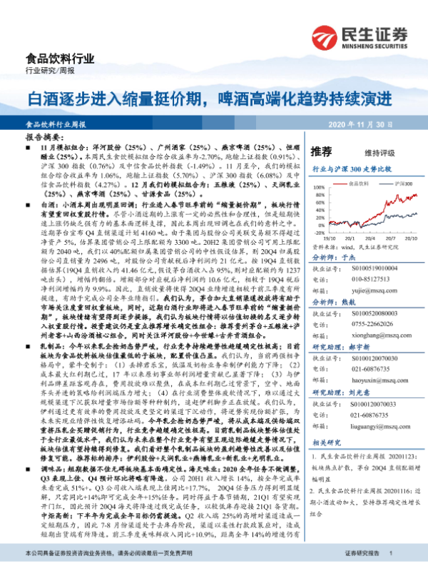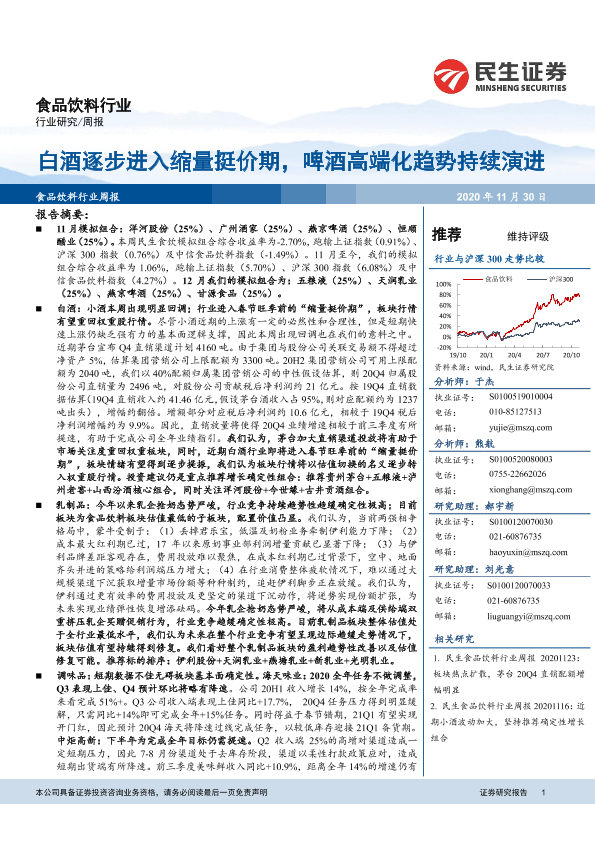 【民生证券】【20201130】20201130-民生证券-食品饮料行业周报:白酒逐步进入缩量挺价期,啤酒高端化趋势持续演进-35页