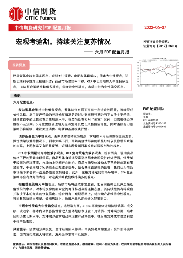【中信期货】【20220607】六月FOF配置月报:宏观考验期,持续关注复苏情况-23页