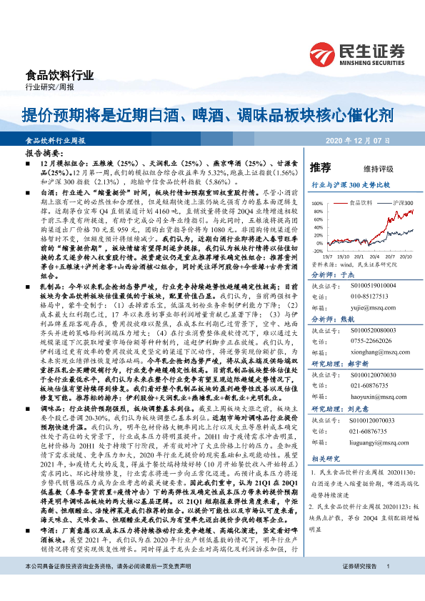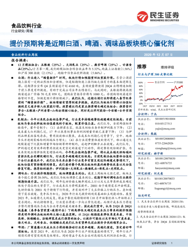 【民生证券】【20201207】20201207-民生证券-食品饮料行业周报:提价预期将是近期白酒、啤酒、调味品板块核心催化剂-36页