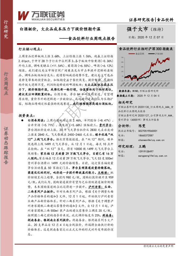 【万联证券】【20201207】20201207-万联证券-食品饮料行业周观点报告:白酒挺价,大众品成本压力下提价预期升温-12页