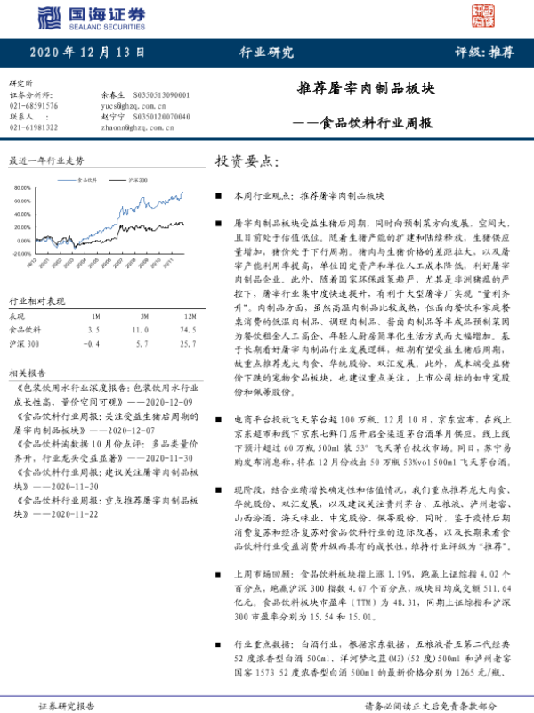 【国海证券】【20201213】20201213-国海证券-食品饮料行业周报:推荐屠宰肉制品板块-18页