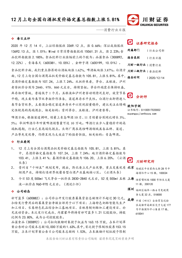 【川财证券】【20201214】12月上甸全国白酒批发价格定基总指数上涨5.81%-3页