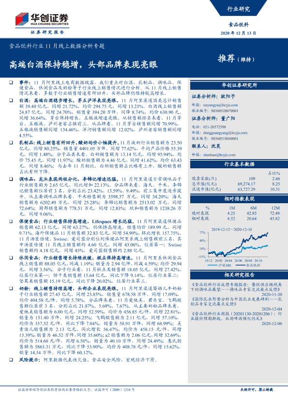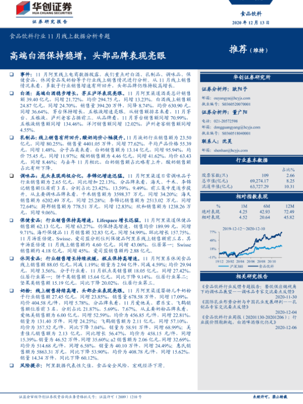 【华创证券】【20201213】食品饮料行业11月线上数据分析专题:高端白酒保持稳增,头部品牌表现亮眼-20页