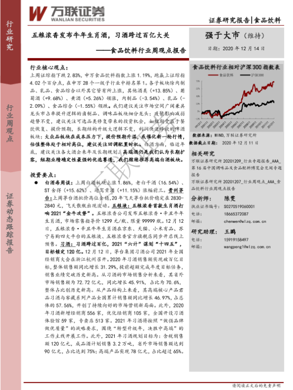【万联证券】【20201214】20201214-万联证券-食品饮料行业周观点报告:五粮浓香发布牛年生肖酒,习酒跨过百亿大关-10页