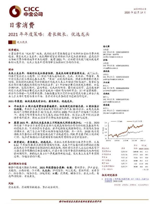 【中金公司】【20201214】日常消费2021年年度策略:看长做长,优选龙头-26页