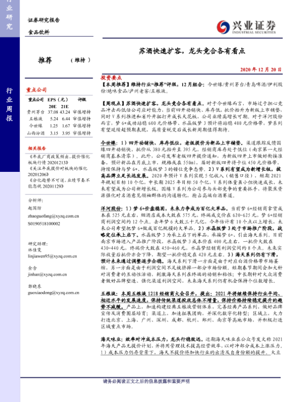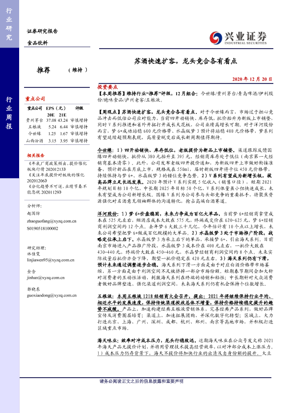 【兴业证券】【20201220】食品饮料行业周报:苏酒快速扩容,龙头竞合各有看点-16页