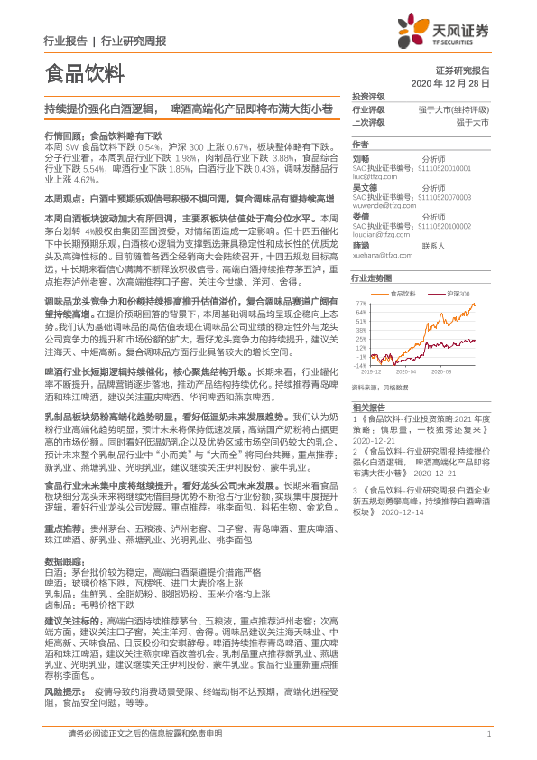 【天风证券】【20201228】食品饮料行业:持续提价强化白酒逻辑,啤酒高端化产品即将布满大街小巷-8页