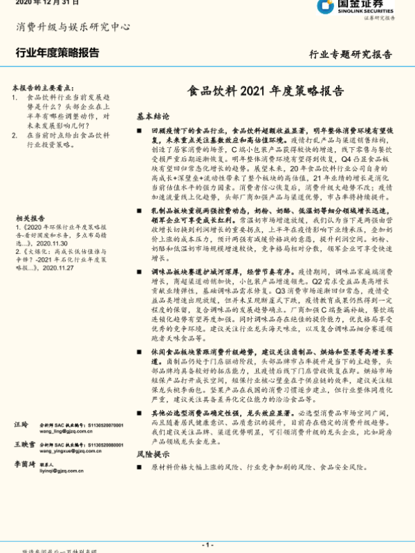 【国金证券】【20201231】食品饮料2021年度策略报告-41页