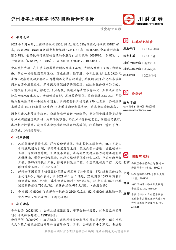 【川财证券】【20210106】消费行业日报:泸州老窖上调国窖1573团购价和零售价-3页