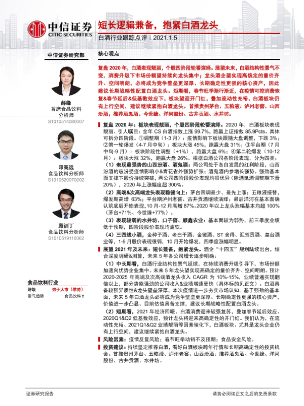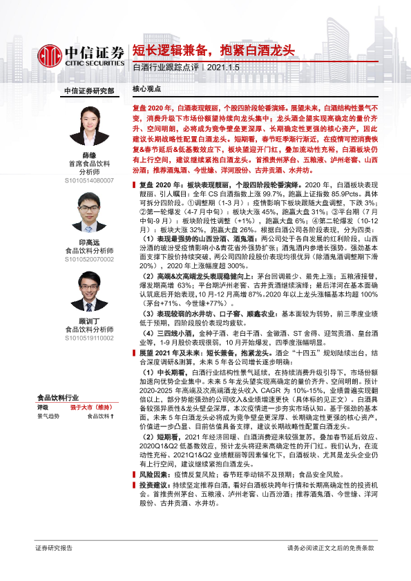 【中信证券】【20210105】20210105-中信证券-白酒行业跟踪点评:短长逻辑兼备,抱紧白酒龙头-11页