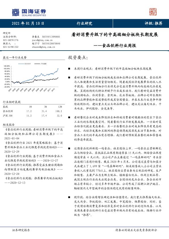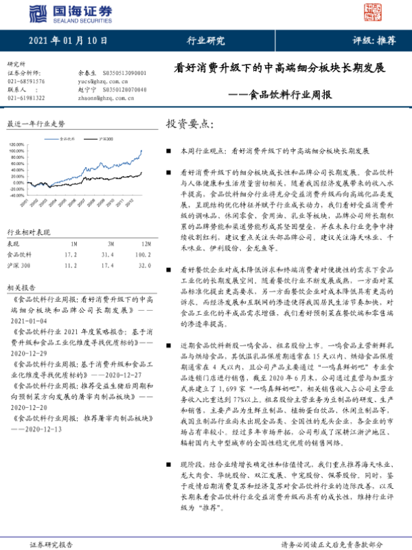 【国海证券】【20210110】食品饮料行业周报:看好消费升级下的中高端细分板块长期发展-18页
