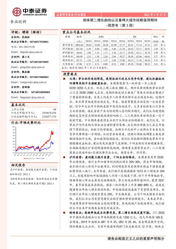 【中泰证券】【20210117】食品饮料周思考(第3周):绝味第二增长曲线以及重啤大城市战略值得期待-9页