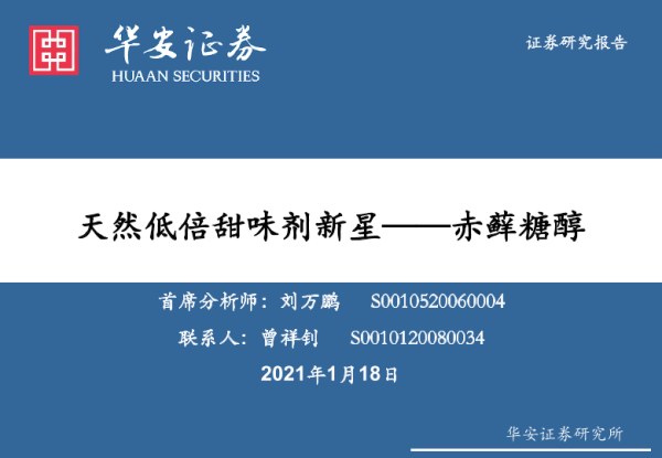 【华安证券】【20210118】食品饮料:天然低倍甜味剂新星——赤藓糖醇-48页