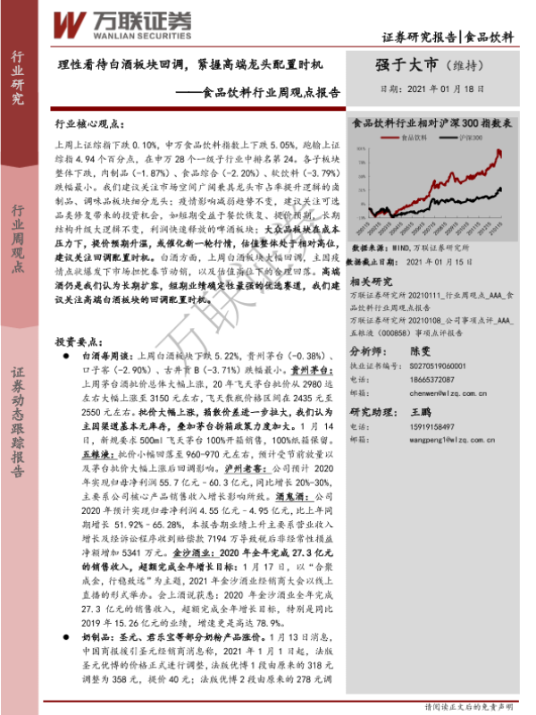 【万联证券】【20210118】20210118-万联证券-食品饮料行业周观点报告:理性看待白酒板块回调,紧握高端龙头配置时机-10页