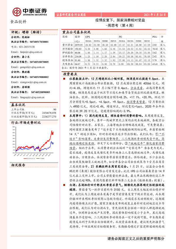 【中泰证券】【20210124】食品饮料周思考(第4周):疫情反复下,居家消费相对受益-7页