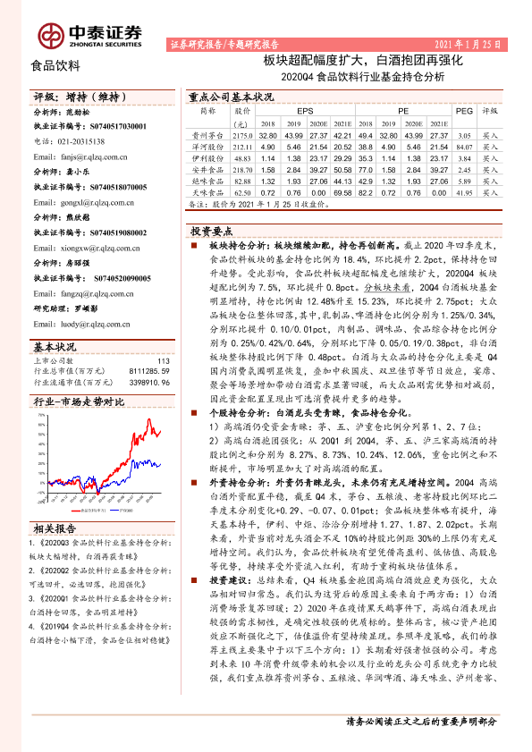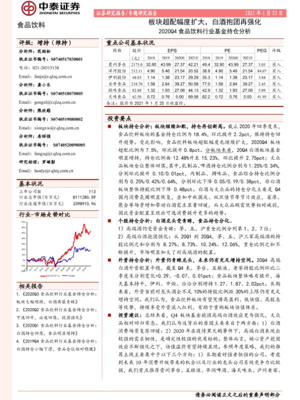【中泰证券】【20210125】2020Q4食品饮料行业基金持仓分析:板块超配幅度扩大,白酒抱团再强化-10页