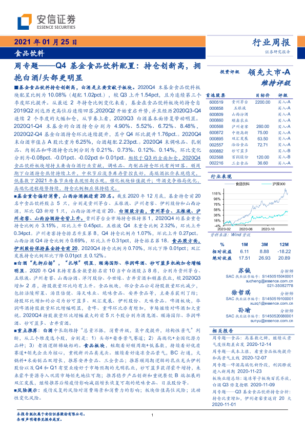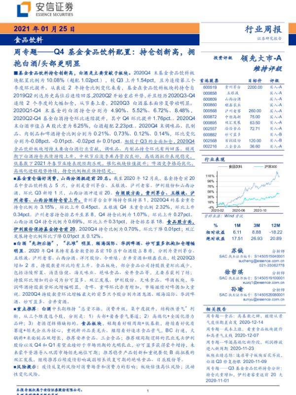 【安信证券】【20210125】Q4基金食品饮料配置:持仓创新高,拥抱白酒 头部更明显-20页
