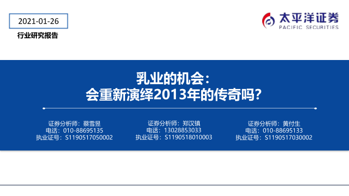 【太平洋证券】【20210126】乳业的机会:会重新演绎2013年的传奇吗?-14页