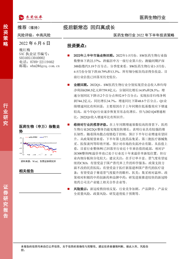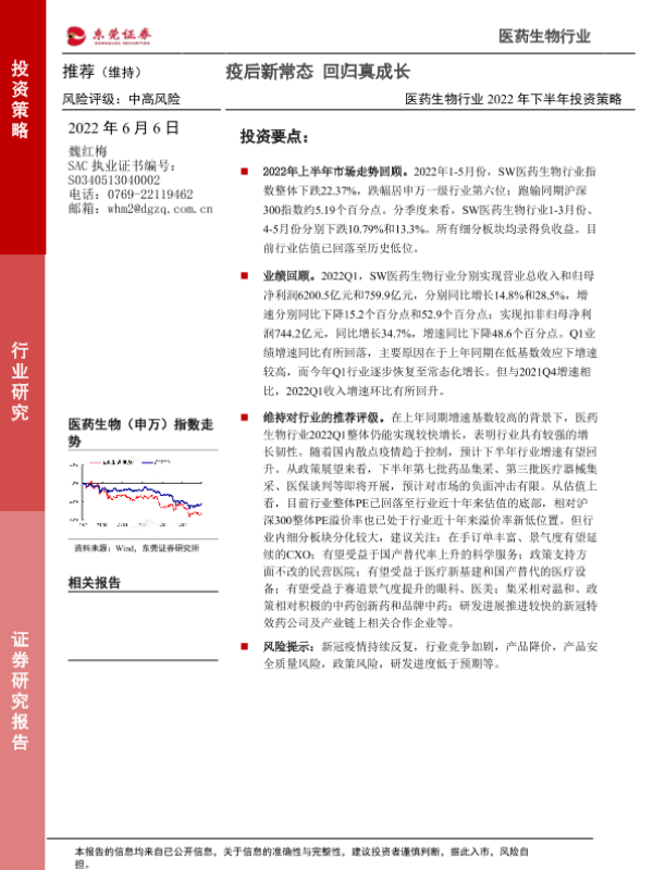 【东莞证券】【20220606】医药生物行业2022年下半年投资策略:疫后新常态,回归真成长-46页