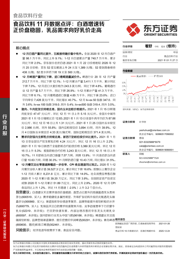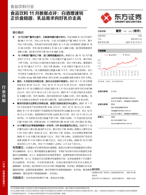 【东方证券】【20210127】食品饮料11月数据点评:白酒增速转正价盘稳固,乳品需求向好乳价走高-13页