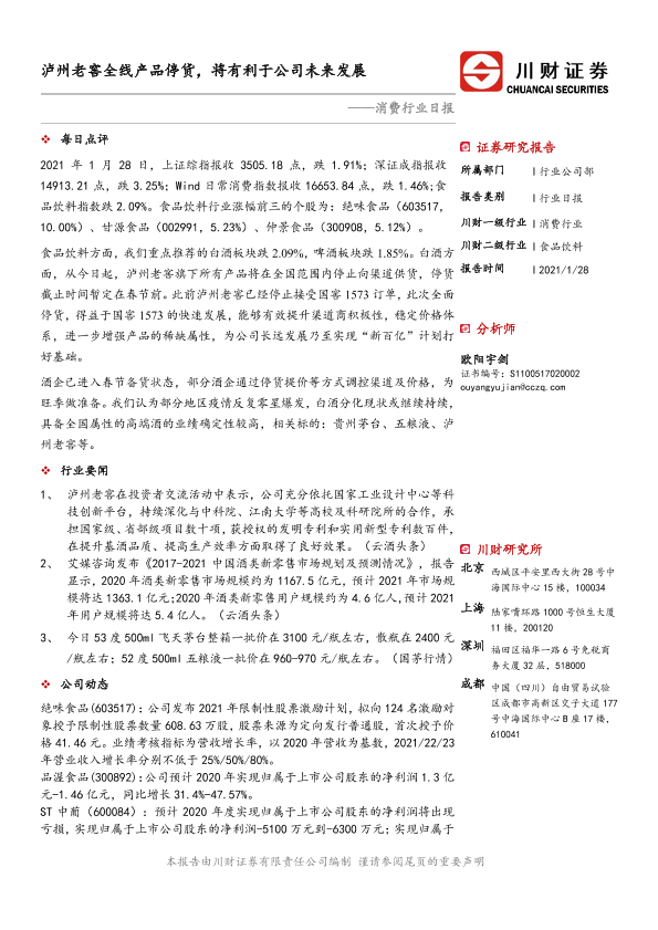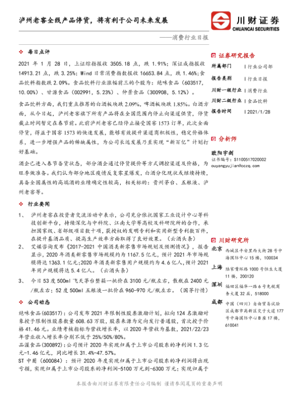 【川财证券】【20210128】消费行业日报:泸州老窖全线产品停货,将有利于公司未来发展-3页