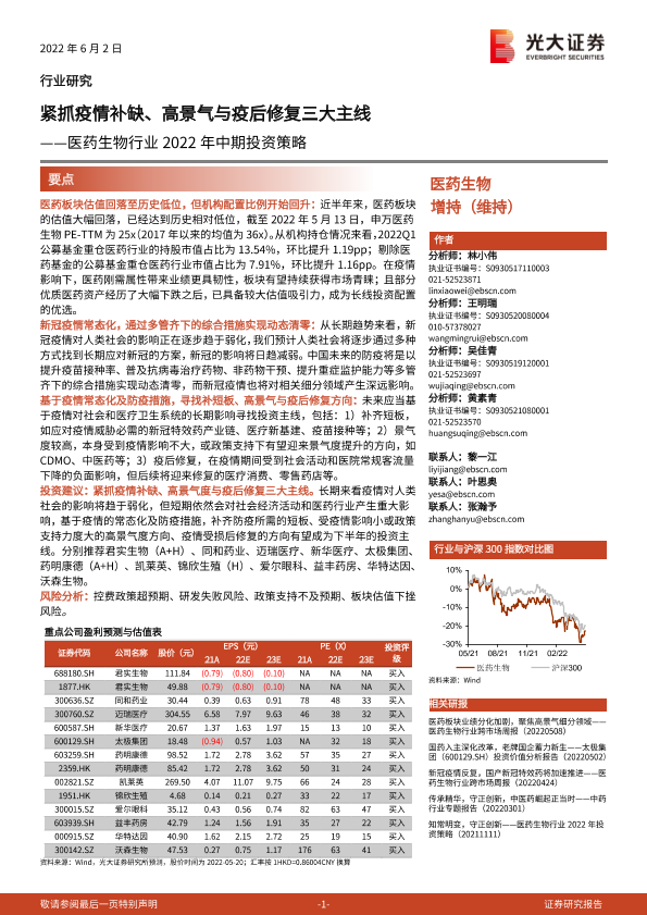【光大证券】【20220602】医药生物行业2022年中期投资策略:紧抓疫情补缺、高景气度与疫后修复三大主线-55页