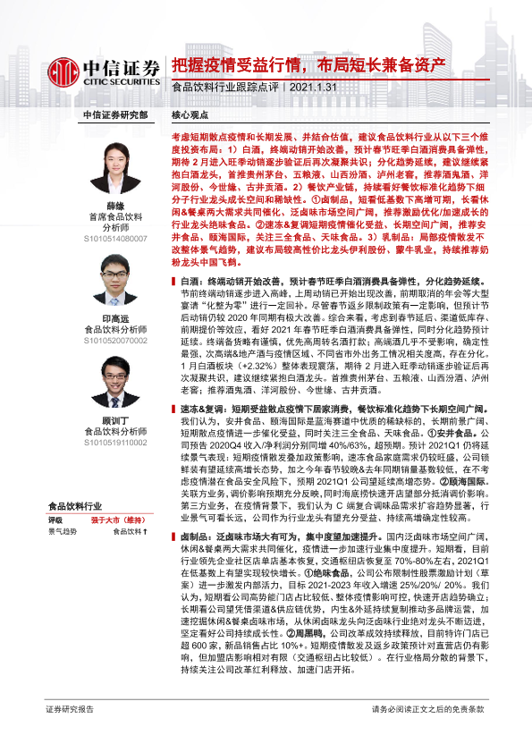 【中信证券】【20210131】20210131-中信证券-食品饮料行业跟踪点评:把握疫情受益行情,布局短长兼备资产-3页