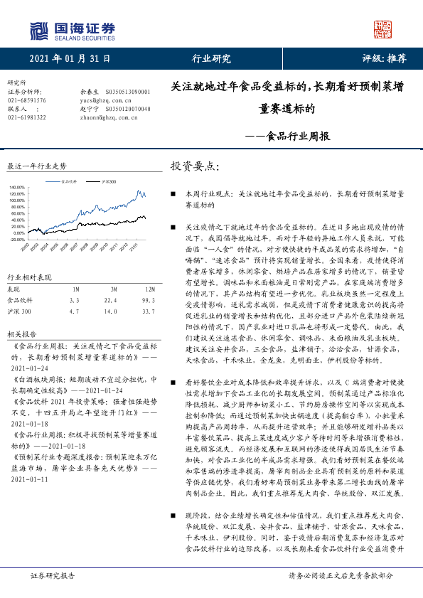 【国海证券】【20210131】食品行业周报:关注就地过年食品受益标的,长期看好预制菜增量赛道标的-23页