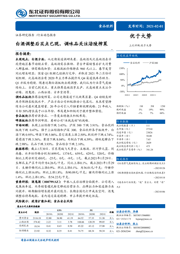 【东北证券】【20210201】20210201-东北证券-食品饮料行业动态报告:白酒调整后买点已现,调味品关注涪陵榨菜-17页