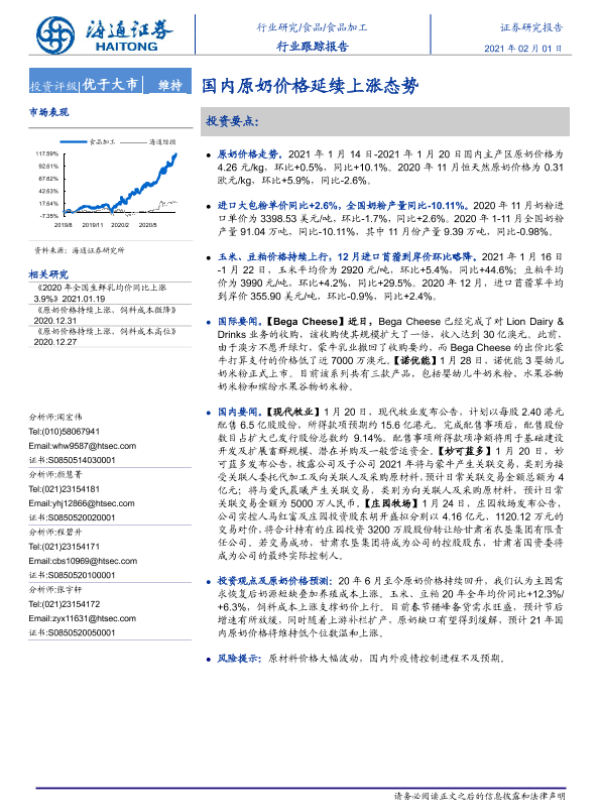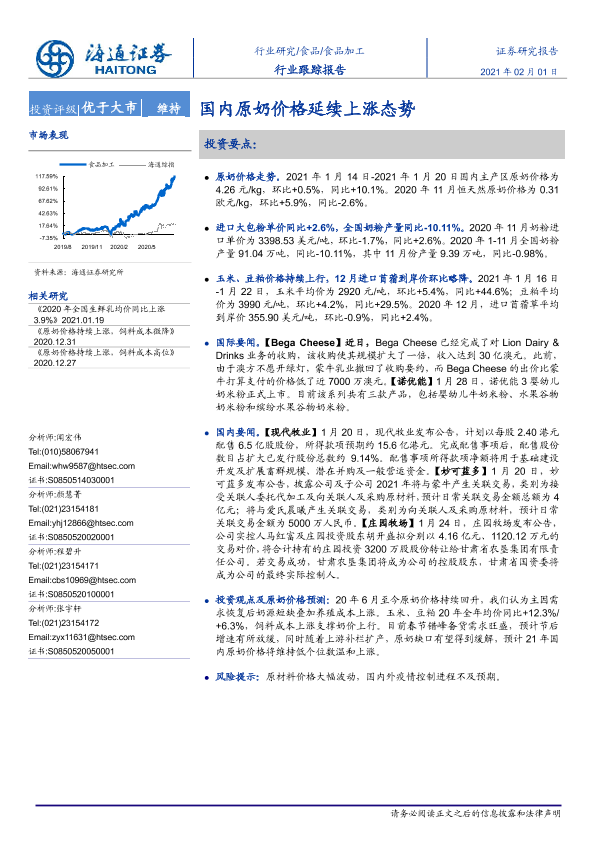 【海通证券】【20210201】20210201-海通证券-食品加工行业跟踪报告:国内原奶价格延续上涨态势-10页