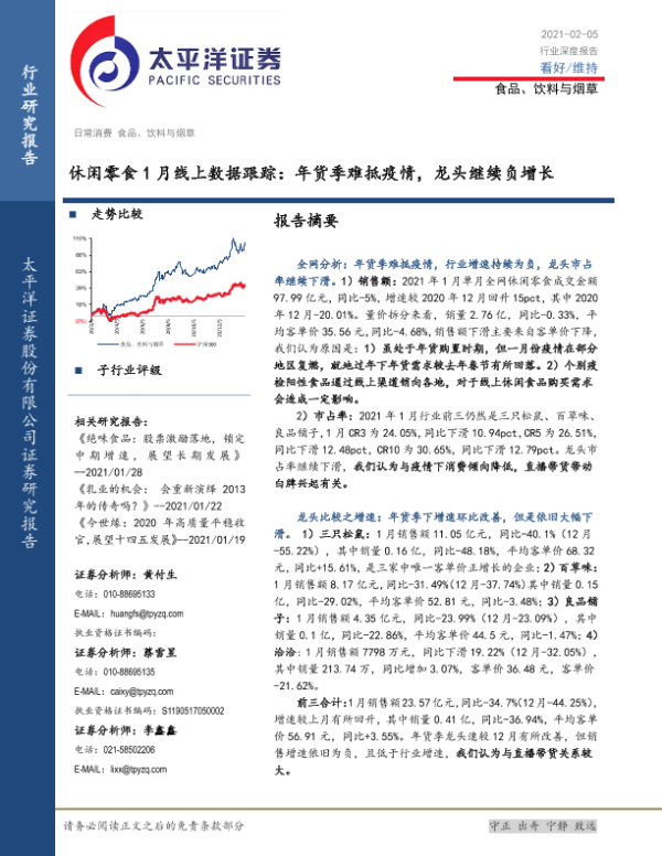 【太平洋证券】【20210205】20210205-太平洋-休闲零食1月线上数据跟踪:年货季难抵疫情,龙头继续负增长-7页