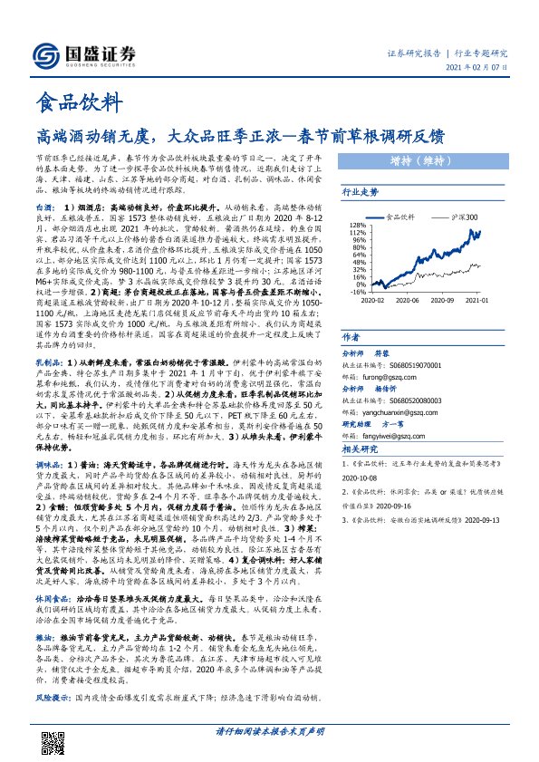 【国盛证券】【20210207】20210207-国盛证券-食品饮料行业专题研究:高端酒动销无虞,大众品旺季正浓-春节前草根调研反馈-8页