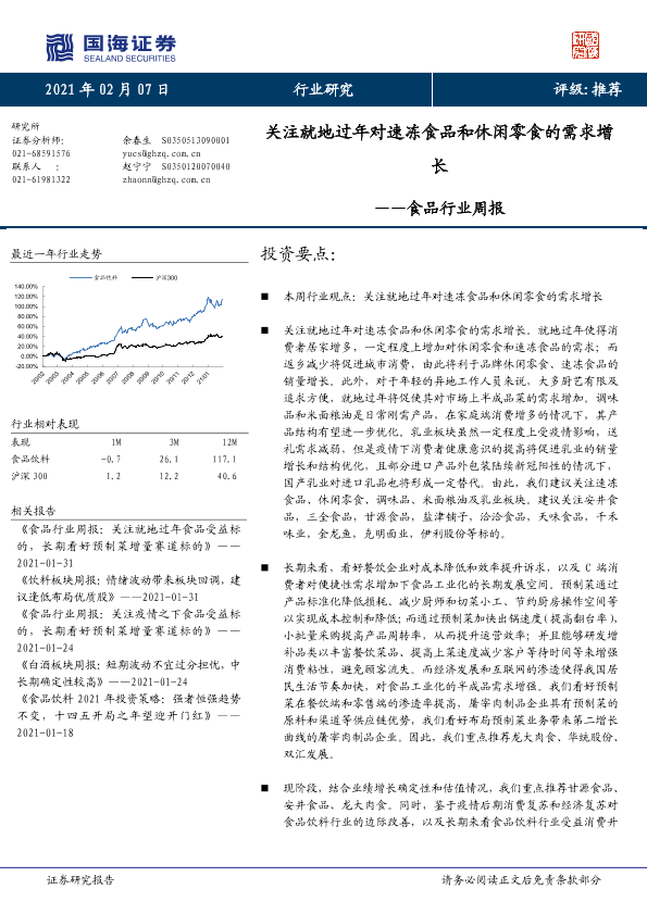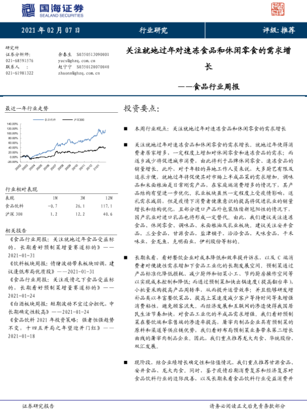 【国海证券】【20210207】食品行业周报:关注就地过年对速冻食品和休闲零食的需求增长-18页