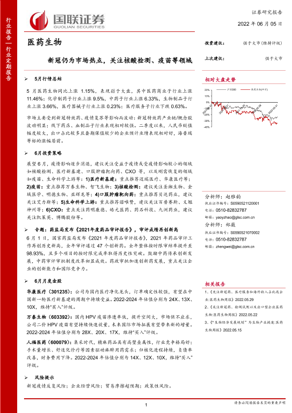 【国联证券】【20220605】医药生物行业:新冠仍为市场热点,关注核酸检测、疫苗等领域-21页